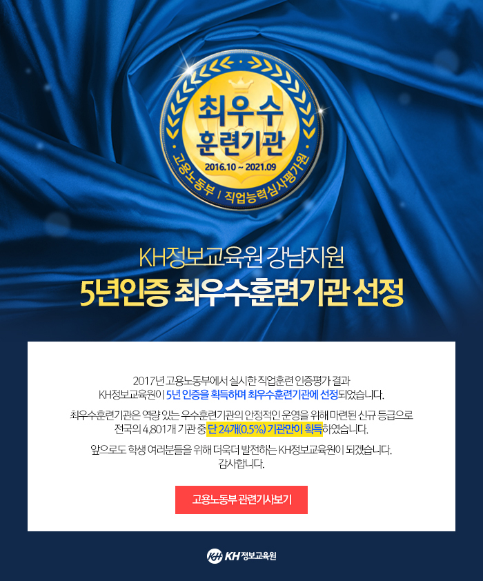 KH정보교육원 강남지원 최우수훈련기관 선정