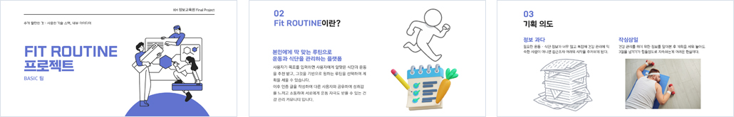 개요 Fit Routine은 사용자의 현재 신체 정보와 운동 목표를 입력받아, 공공데이터를 기반으로 맞춤형 식단과 운동을 추천하고,