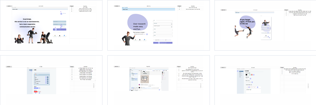 | 박** : 사이드바 기능 구현 (서버, 채널, 친구, 사용자) - 서버목록 불러오기 - 1:1 DM 화면 - 특정 채널에 들어와 있는 인원 목록보이기 - 친구의 on/off 상태로 친구목록보이기 텍스트 api -tiny api를 사용하여 글씨 스타일링, 간편한 이미지, 동영상 첨부 기능 구현 | |